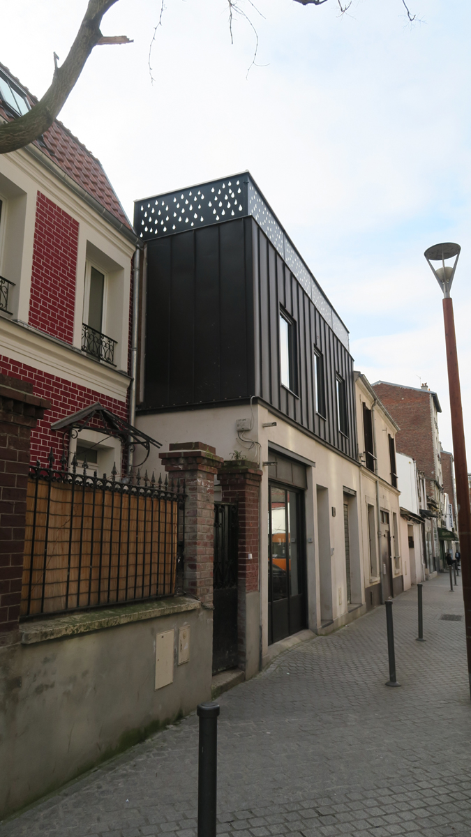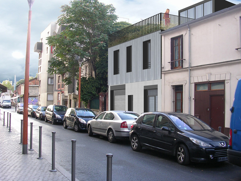 Le projet consiste en la surélévation d'une maison atelier existante dans le secteur des puces de Saint-Ouen.
