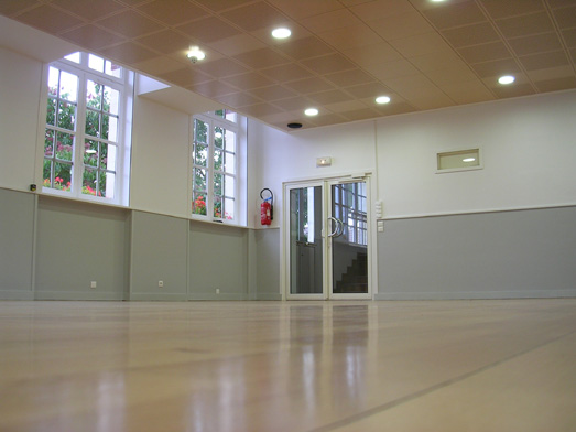 La salle Jacques Prévert, attenante a la mairie de Villers-Saint-Paul et servant de salle de conseil municipal et de salle des mariages, a été entièrement rénovée de manière à offrir le confort visuel et phonique qui lui manquaient. Une paroi en médium laqué perforé sépare la salle du bureau du maire. Le faux-plafond acoustique en érable sycomore intègre les luminaires et participe à l'ambiance chaleureuse de cette salle. Les stores motorisés permettent de filtrer la lumière et de se préserver de l'extérieur. Les allèges sont traitées en Koroseal.